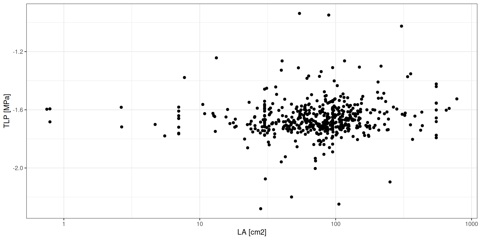 LA: leaf area (cm2)TLP: leaf water potential at turgor loss point (MPa)