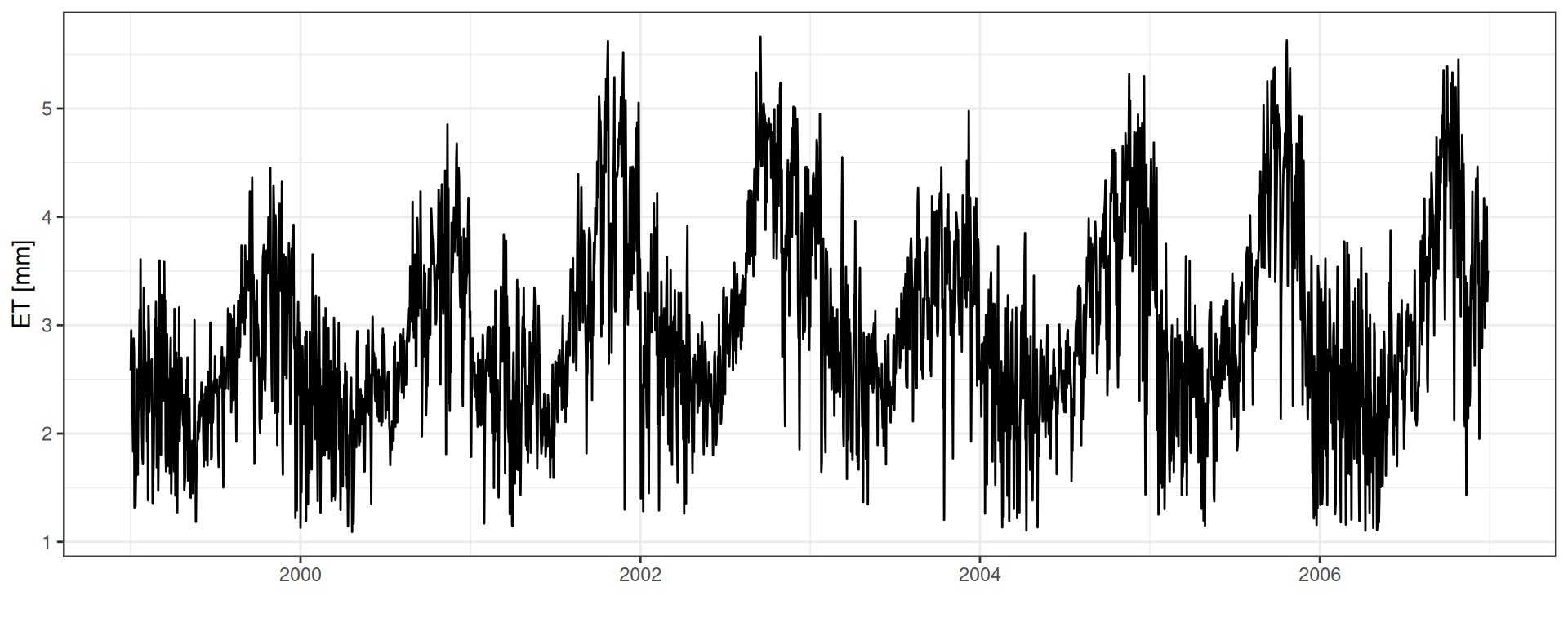 geom_line() + theme_bw() + xlab("") + ylab("ET [mm]")