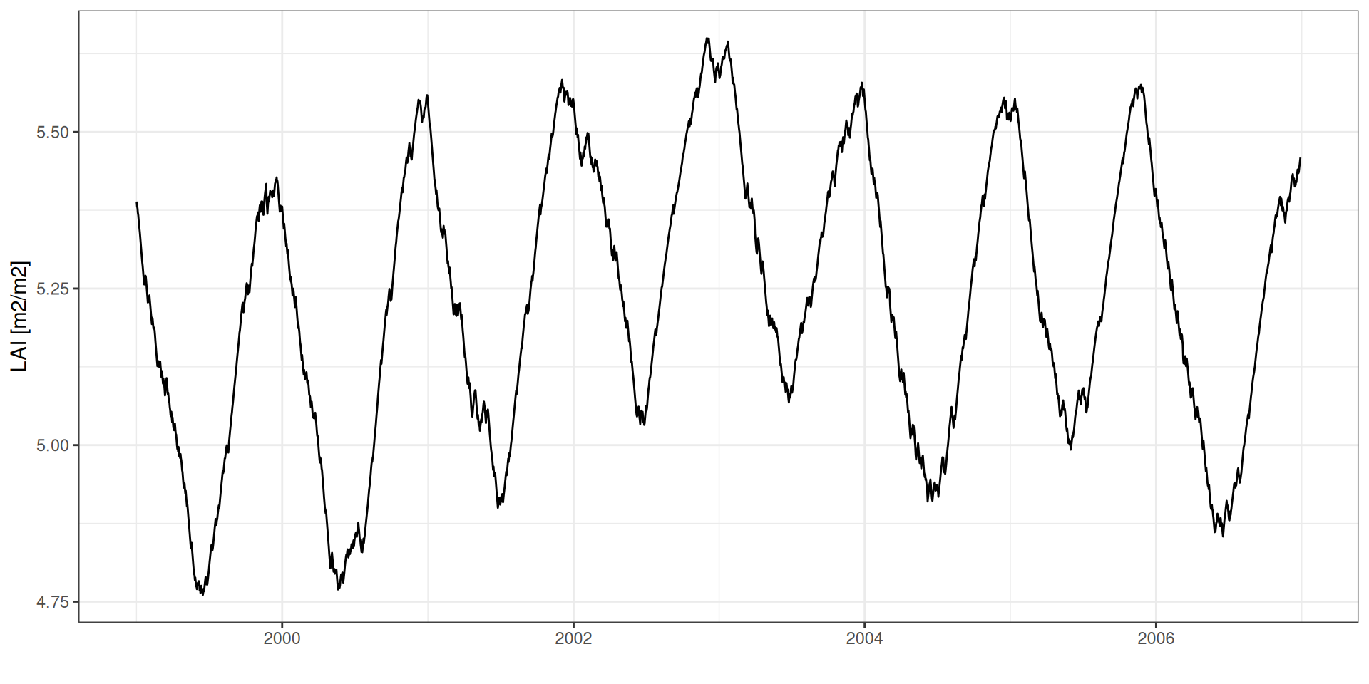 theme_bw() + xlab("") + ylab("LAI [m2/m2]")